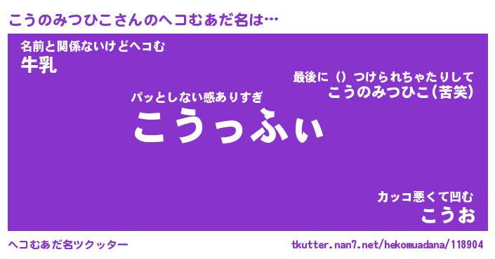 | 肩書あだ名 | 『こうのみつひこ御曹司』 |