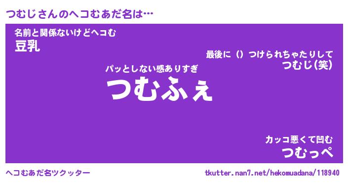 | 2回繰り返すあだ名 | 『つむつむ』『つつむむ』『うねうね』 |