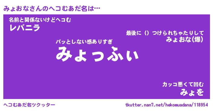 | 意味不明あだ名 | 『ペロリンみょおな』『永久保存みょおな』 |