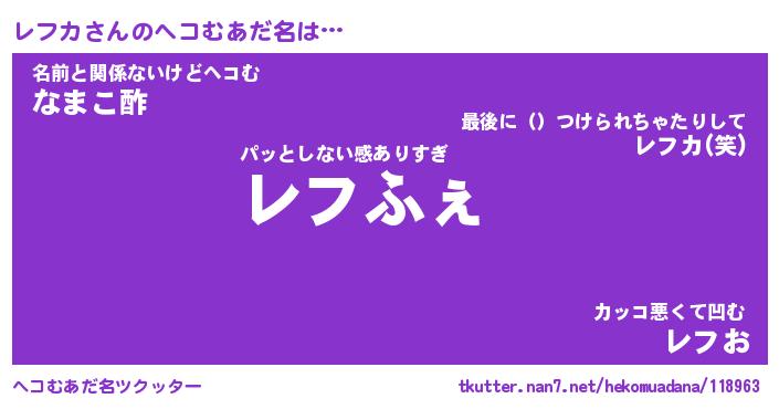 | 意味不明あだ名 | 『ペロリンレフカ』『レフカフォーエバー』 |