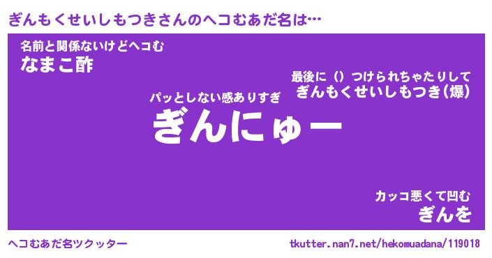 | 2回繰り返すあだ名 | 『ぎんぎん』『ぎぎんん』『にぎにぎ』 |