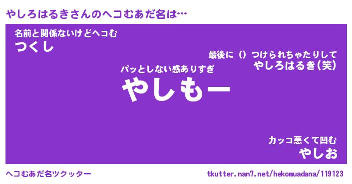 | ヒーロー風カッコイイあだ名 | 『スーパーヤシロハルキ』『銀牙騎士ヤシ』 |