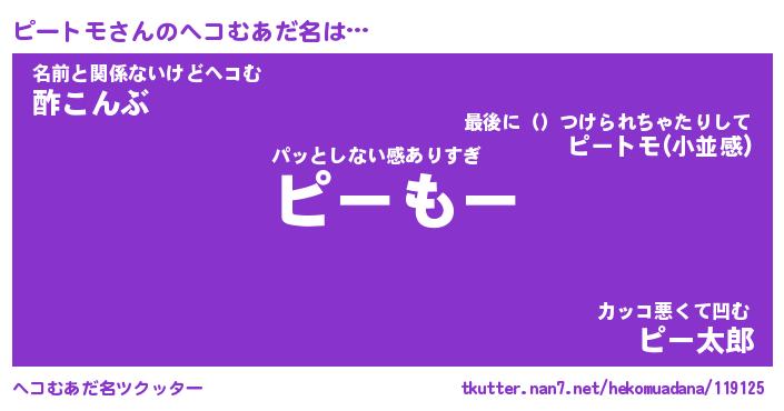 | 男性向けラノベタイトル風あだ名 | 『ピートモの憂鬱』 |