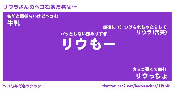| ヒーロー風カッコイイあだ名 | 『スーパーリウラ』『ウルトラリウラマン』 |