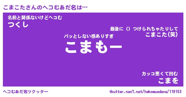 | ファンタジー風あだ名 | 『コマフェル』『エターナルコマコター』 |