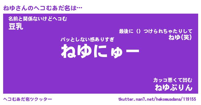 | ポケモン風あだ名 | 『ネユチュウ』『ネユダネ』『ヒネユ』 |