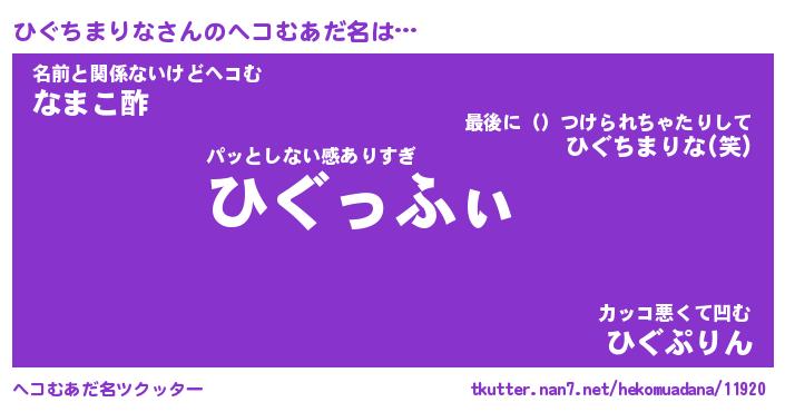 | 男性向けラノベタイトル風あだ名 | 『ヒグチマリナアートオンライン』 |