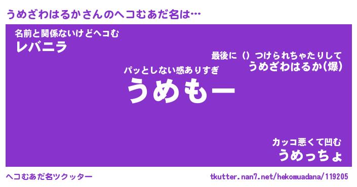 | ポケモン風あだ名 | 『ウメチュウ』『ウメザダネ』 |