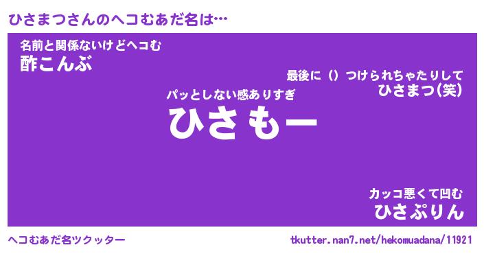 | ポケモン風あだ名 | 『ヒサチュウ』『ヒサマダネ』 |