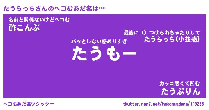 | 恥ずかしいあだ名 | 『プリティーたうらっち』『たうっちょ』 |