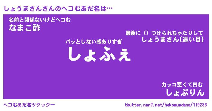 | 2回繰り返すあだ名 | 『しょしょ』『ししょょ』『こんこん』 |