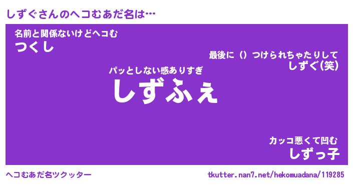 | 意味不明あだ名 | 『ペロリンしずぐ』『しずぐフォーエバー』 |