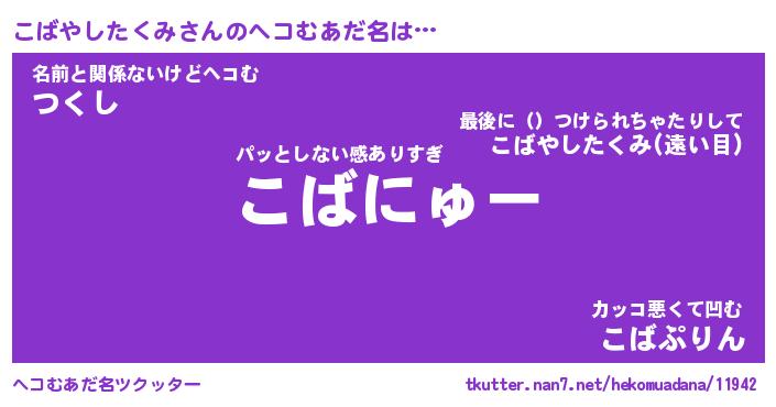| ヒーロー風カッコイイあだ名 | 『スーパーコバヤシタクミ』 |