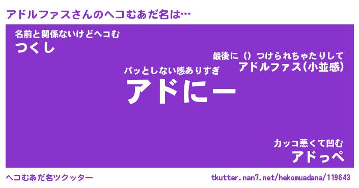 | ポケモン風あだ名 | 『アドチュウ』『アドルダネ』 |