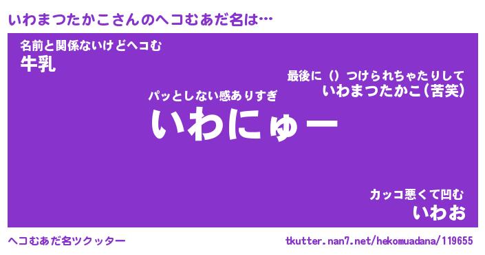 | 男性向けラノベタイトル風あだ名 | 『いわまつたかこの憂鬱』 |