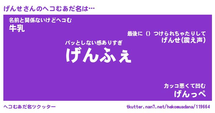 | ファンタジー風あだ名 | 『ゲンフェル』『エターナルゲンセー』 |