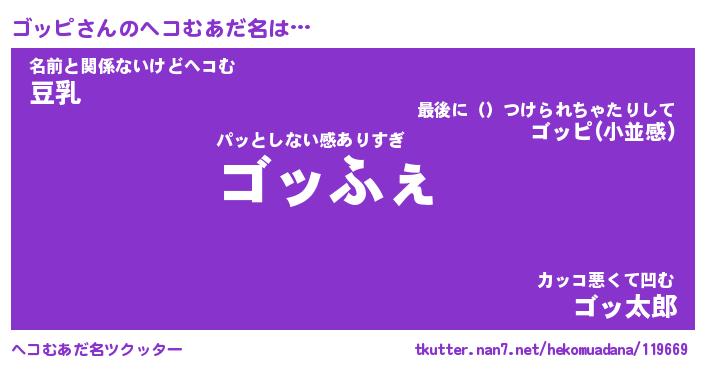 | ポケモン風あだ名 | 『ゴッチュウ』『ゴッピダネ』 |