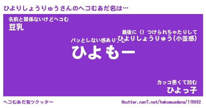 | ヒーロー風カッコイイあだ名 | 『スーパーヒヨリショウリュウ』 |
