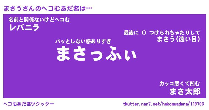 | 意味不明あだ名 | 『ペロリンまさう』『まさうフォーエバー』 |