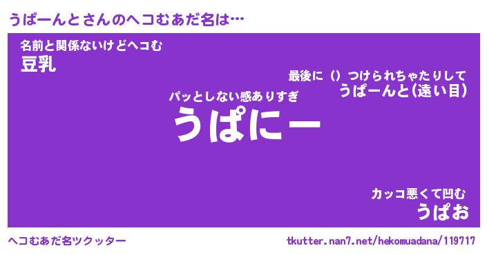 | ポケモン風あだ名 | 『ウパチュウ』『ウパーダネ』 |