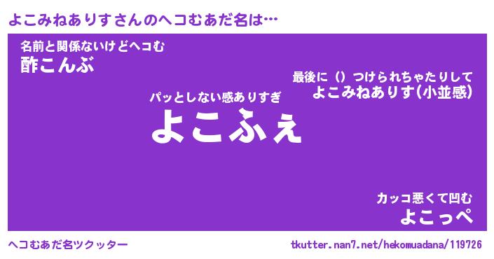 | 胡散臭い通販商品みたいなあだ名 | 『モテモテ間違いなし水晶球…その名も「よこみねありす」』 |