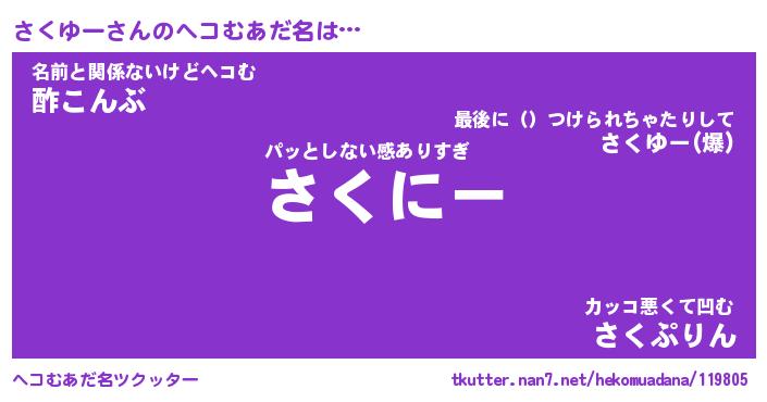 | 意味不明あだ名 | 『ペロリンさくゆー』『永久保存さくゆー』 |