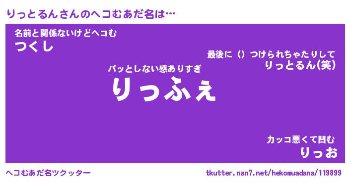 | 2回繰り返すあだ名 | 『りっりっ』『りりっっ』『いらいら』 |