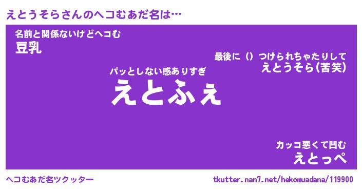 | 意味不明あだ名 | 『ペロリンえとうそら』 |