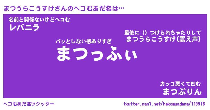 | 肩書あだ名 | 『まつうらこうすけ御曹司』 |