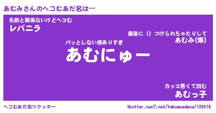| 男性向けラノベタイトル風あだ名 | 『あむみの憂鬱』 |