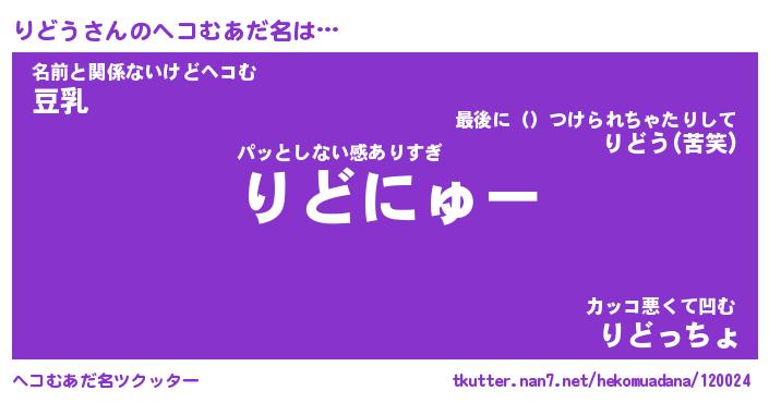 | ヒーロー風カッコイイあだ名 | 『スーパーリドウ』『ウルトラりどうマン』 |