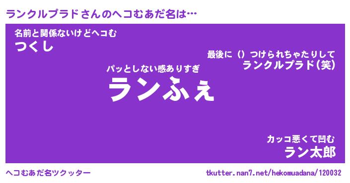 | 男性向けラノベタイトル風あだ名 | 『ランクルプラドアートオンライン』 |