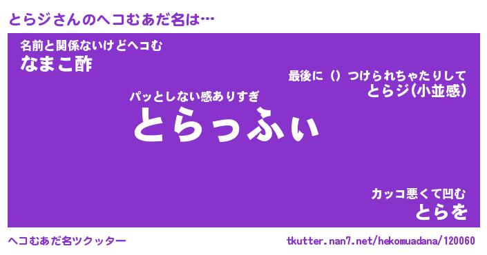 | 胡散臭い通販商品みたいなあだ名 | 『モテモテ間違いなし霊験あらたかなお札…その名も「とらジ」』 |