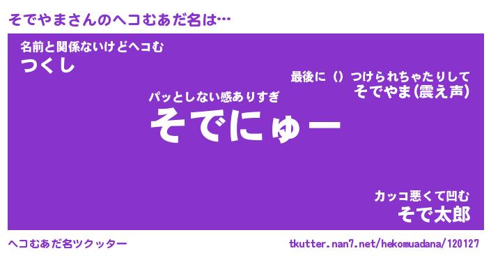 | 2回繰り返すあだ名 | 『そでそで』『そそでで』『ねばねば』 |