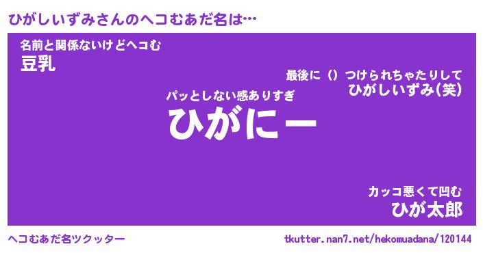 | ポケモン風あだ名 | 『ヒガチュウ』『ヒガシダネ』 |