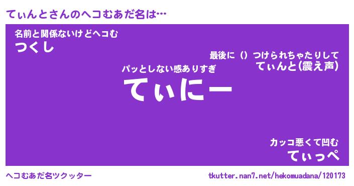 | 自動車の名前っぽいあだ名 | 『ティティマ』『テスラー』『テンR』 |