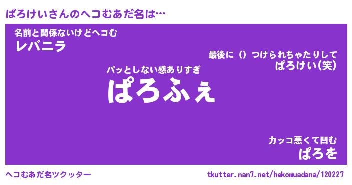 | 意味不明あだ名 | 『ペロリンぱろけい』『永久保存ぱろけい』 |