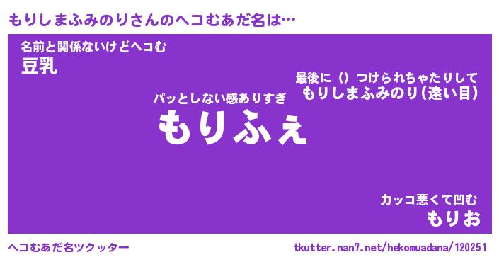 | 意味不明あだ名 | 『ペロリンもりしまふみのり』 |