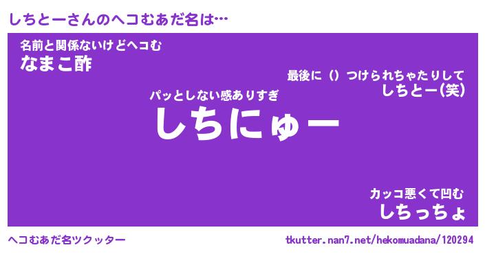| ポケモン風あだ名 | 『シチチュウ』『シチトダネ』 |