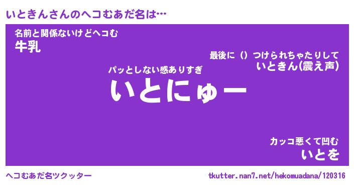 | 意味不明あだ名 | 『ペロリンいときん』『永久保存いときん』 |
