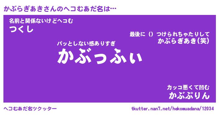 | 男性向けラノベタイトル風あだ名 | 『カブラギアキアートオンライン』 |