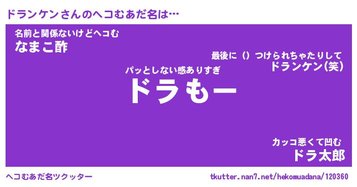 | 自動車の名前っぽいあだ名 | 『ドラティマ』『ドスラー』『ドント』 |