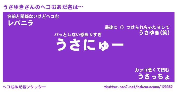 | ポケモン風あだ名 | 『ウサチュウ』『ウサユダネ』 |