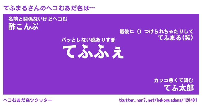 | 恥ずかしいあだ名 | 『プリティーてふまる』『てふっちょ』 |