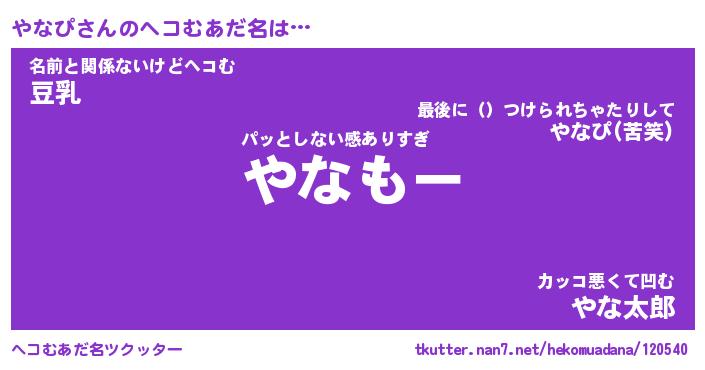 | ピコ太郎風あだ名 | 『ヤコ四郎』『ピヤ三郎』『ヤナ二郎』 |