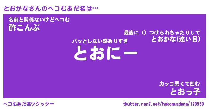 | ポケモン風あだ名 | 『トオチュウ』『トオカダネ』 |