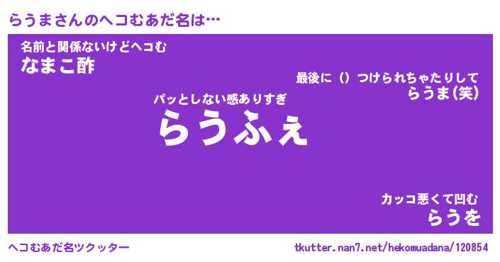 | 意味不明あだ名 | 『ペロリンらうま』『らうまフォーエバー』 |