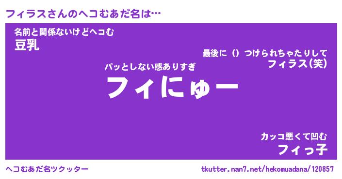 | 意味不明あだ名 | 『ペロリンフィラス』『永久保存フィラス』 |