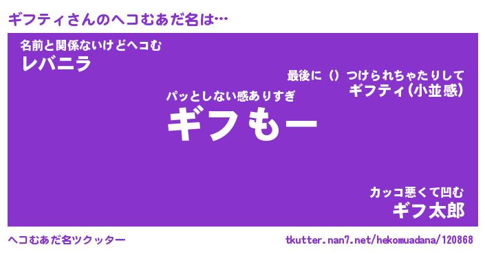 | 意味不明あだ名 | 『ペロリンギフティ』『永久保存ギフティ』 |