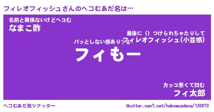 | ピコ太郎風あだ名 | 『フコ五郎』『ピフ十郎』『フィ一郎』 |